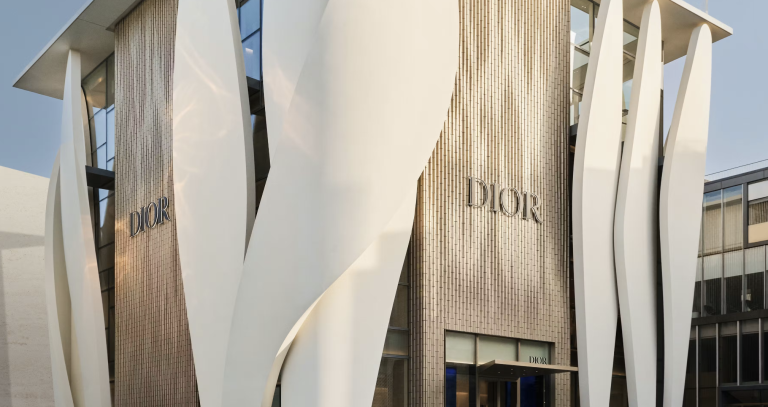Spanning five floors, the new sculptural building has a façade designed by architect Christian de Portzamparc, embellished with petal-shaped shells that evoke the movement of the toiles as Christian Dior cut them for his haute couture dresses. The vertical front planes are punctuated with golden artisanal glass tiles, a powerful color in China traditionally reserved for the emperor and his family, offering a virtuoso contemporary ode to elegance.