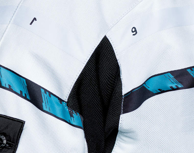 LIGHT NYLON-R consists of a 3-layer composite structure that combines a windproof, water resistant and breathable performance membrane in polyurethane, between a micro mesh base and a high-density nylon jersey outer layer. Lightness and packability are emphasized in this fabric, as is the unparalleled colour obtained from Stone Island’s experience in finished garment dyeing.