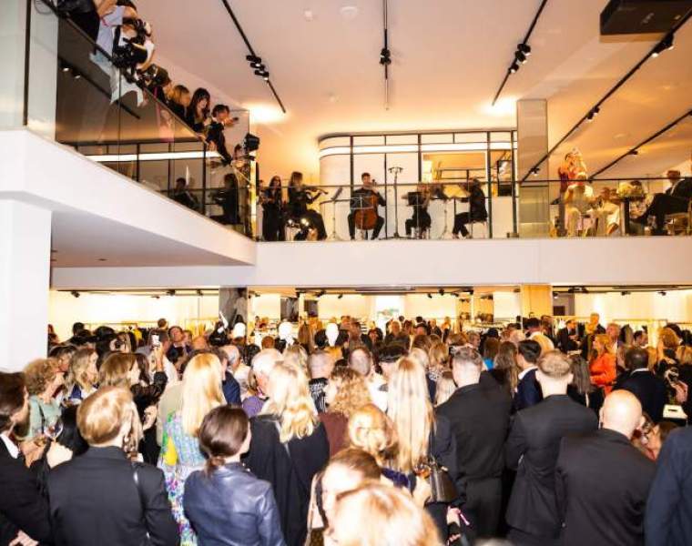 Leaving the facade and shop windows behind, visitors first enter the large entrance area. Beauty brands like Ojar, Tide, Nishane, New Notes and Xerjoff as well as interior brands such as Astier de Villatte, Fornasetti, Christofle and Ginori 1735 are presented on hand-forged brass shelves and marble tables. From here you get to the central main room, the two-storey forum. First is the Shoe Corner, while on the other hand, the room is fully covered with video projections. The forum is a space for exclusive events and emotional presentations of brands, products and media offererings. You will also find Womenswear from houses such as Ferragamo, Jil Sander, Victoria Beckham, Khaite, Carolina Herrera, Gabriela Hearst, Proenza Schouler, Amina Muaddi, Ann Demeulemeester, Gianvito Rossi, Located directly above the women’s department, on the mezzanine floor, is the Menswear department with brands such as Giorgio Armani, Brioni, Kiton, Random Identities, Isabel Marant, God’s True Cashmere, Rhude, 44 Label Group, The Elder Statesmen x Zegna and numerous other international brands.