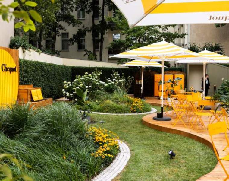 Another highlight of the store and eye-catcher of the area is the APROPOS café on the mezzanine. In addition to the classic hot and cold drinks, the café offers selected cakes and tartes and special champagne from the French Maison Veuve Clicquot. But that’s not everything – alongside editions of Veuve Clicquot Yellow Label Brut and Rosé, the Prestige Cuvée La Grande Dame 2015, guests can enjoy other Moët Hennessy products from Ruinart and Moët & Chandon. Furthermore, APROPOS, in cooperation with Veuve Clicquot, will host the CLICQUOT café from July 21st to August 18th, on the occasion of the “Good Day Sunshine” campaign. In the atmospheric ambience in the leafy and quietly located in the back garden of the house, you can discover exquisite types of champagne from Veuve Clicquot and eat fresh delicacies.