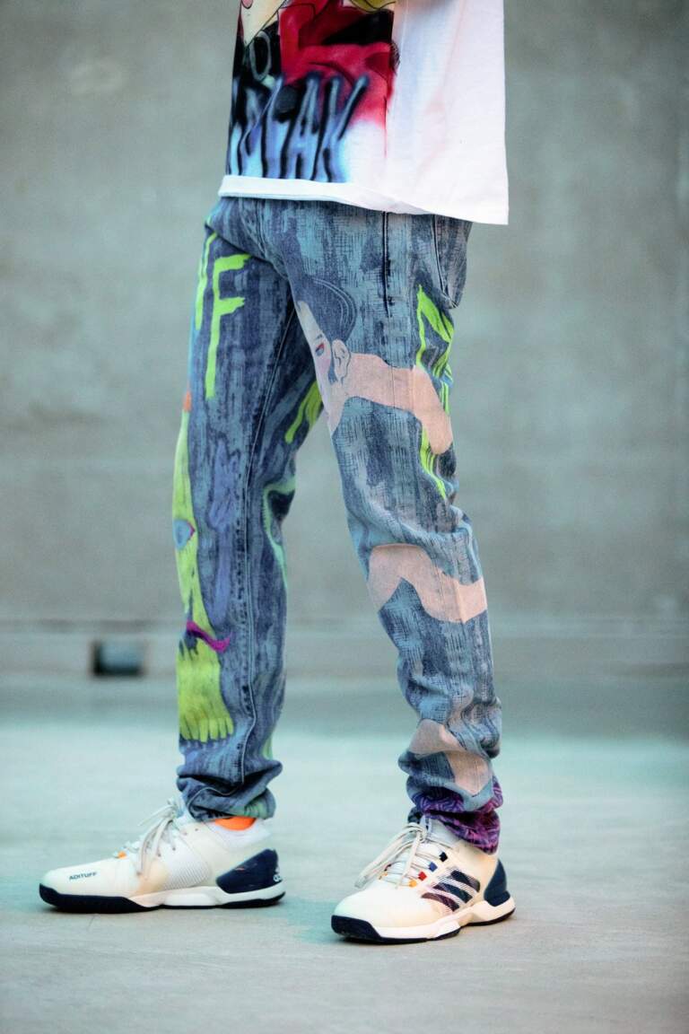 In the hands of Dim Mak, the EC-01 jeans have a deconstructed pop art meets manga aesthetic which has evolved from Dim Mak’s ‘AOKI 1of1’ series, where Steve Aoki, the multi-platform, modern day renaissance man has been upcycling clothing and making original, one-of-a-kind wearable art pieces. Working at the Candiani Design Center in Los Angeles, Aoki chose hardware and learned about denim treatments and processes before adding another very personal touch to each pair – individually hand painted Yōkai, the Japanese demons including the misunderstood Rokurokubi, the mischievous Karakasa kozō, and monstrous Gashadokuro – with the help of Dim Mak’s artists at Aoki’s Las Vegas home, where Aoki has a design and recording studio.