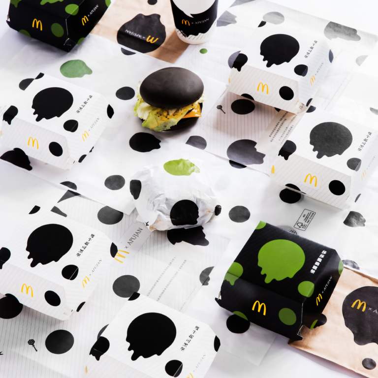 The new collaboration that launched on 6th May 2020 includes package designs for burgers, drinks and McFlurry’s with highly stylised wrapping that makes extensive use of the colour black with some of the burgers, made of cuttlefish juice also with a black appearance.