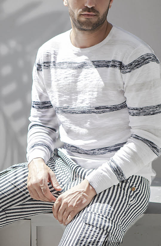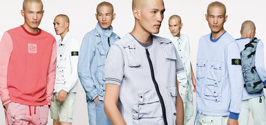The concept is also developed with polos and T-shirts made in jersey cotton, Bermuda shorts in Nylon Metal, plated all over in two different colour intensities with placed prints.