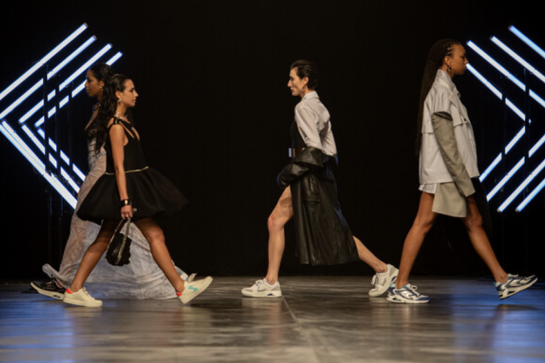 Rebekka Ruétz presented sneakers from the Skechers UNO and Court & Classics collections at her fashion show, incorporating unworn sneakers from past shows through upcycling as accessories and highlighting the longstanding collaboration with the Comfort Technology Company Special attention was given to the trademark Skechers UNO sneakers with visible air cushioning, as well as models from the new Court & Classics retro sneaker collection featuring high quality synthetic Dural leather uppers and unbeatable comfort thanks to Skechers Air-Cooled Memory Foam® insoles.
