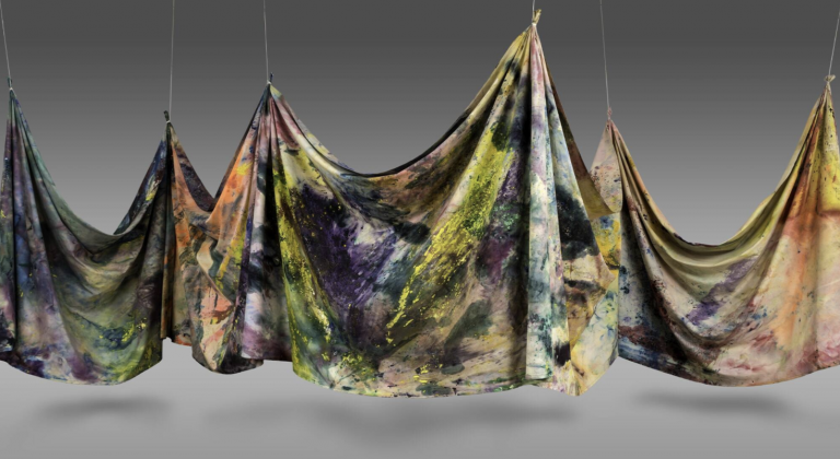 Presented on the top level of the Foundation from May 4 through August 29, “La Couleur en fugue” (“Color Flees”) invites paint to escape the limits of the canvas, occupying space stretching from walls and floors to ceilings. Works by five internationally-renowned artists from diverse backgrounds and generations dialogue with Frank Gehry’s stunning architecture.