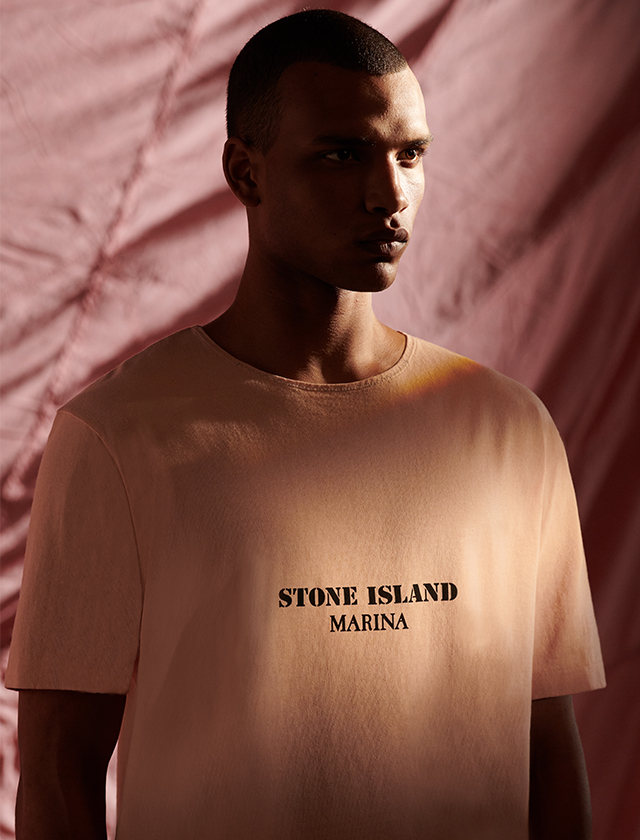 Iconic fabric of the Stone Island aesthetic, Raso Gommato has been declined in 40 years of history in numerous variations. The wind resistant polyurethane film, bonded to a cotton satin of military origin is interpreted time after time to obtain targeted aspects through specific dyeing recipes on the finished garment.